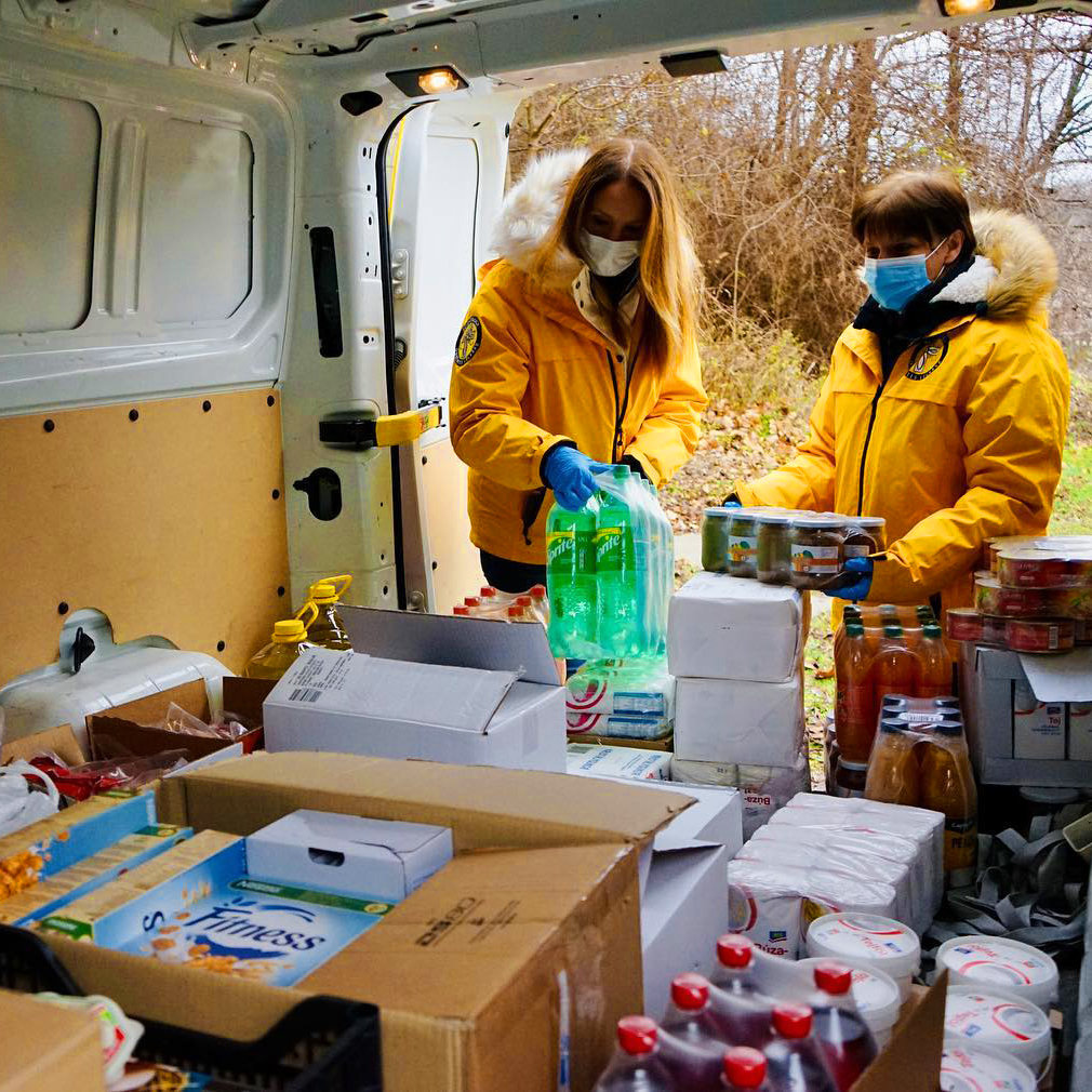 Sie begannen ihre Weihnachtsaktivitäten mit einem Besuch in der Stadt Debrecen, wo die Children’s Hope Foundation sich um diejenigen mit Behinderungen und chronischen Krankheiten kümmert. Sie brachten Weihnachtsgeschenke für die Kinder und haltbare Lebensmittel für ihre Familien. Dies umfasste Konserven, Milch, Speiseöl, Eier, Kartoffeln, Zwiebeln und zwei Paletten mit Putzmitteln und Hygieneartikeln. Die Children’s Hope Foundation verteilte die Bedarfsartikel dann an Familien, um ihnen durch diese schwierigen Zeiten zu helfen.