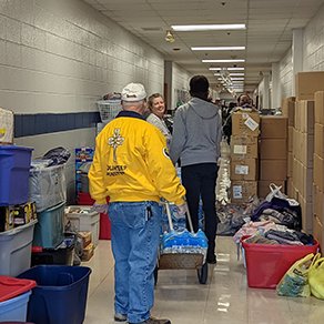 Lokale Ehrenamtliche Geistliche sammeln und verteilen benötigte Verbrauchsgüter an Notunterkünfte und helfen in ihren Gemeinden mit allem, was benötigt wird, während der internationale Hauptsitz der Scientology Ehrenamtlichen Geistlichen einen Aufruf an ausgebildete Ehrenamtliche herausgegeben hat, bei der Katastrophe zu helfen.