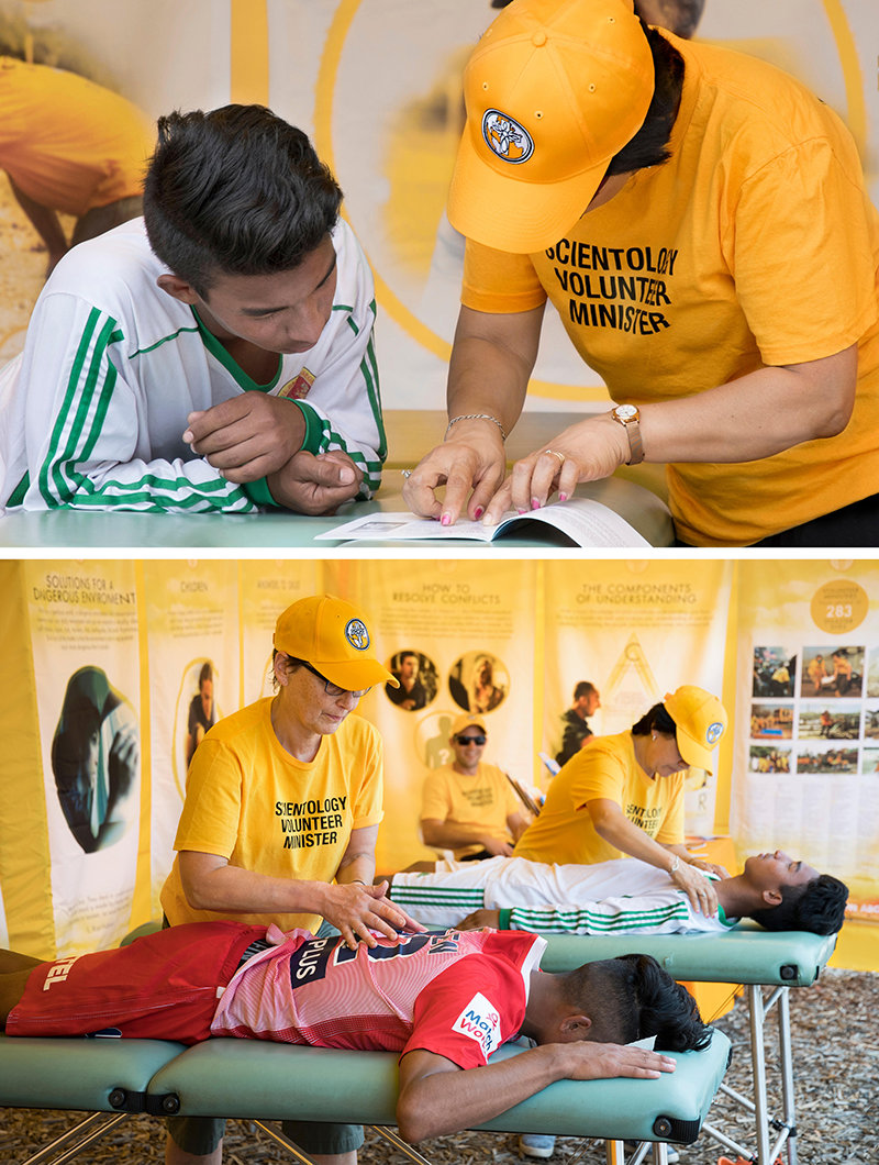 Die Ehrenamtlichen Scientology Geistlichen hatten eine Einladung erhalten, ihr gelbes Zelt bei der Australian Bhutanese National Football Championship zu errichteten und dort Dienste zu geben. Bhutan, ein Land im Himalaja, ein Binnenland zwischen Tibet und Indien, hat eine blühende Flüchtlingsgemeinde in Australien.